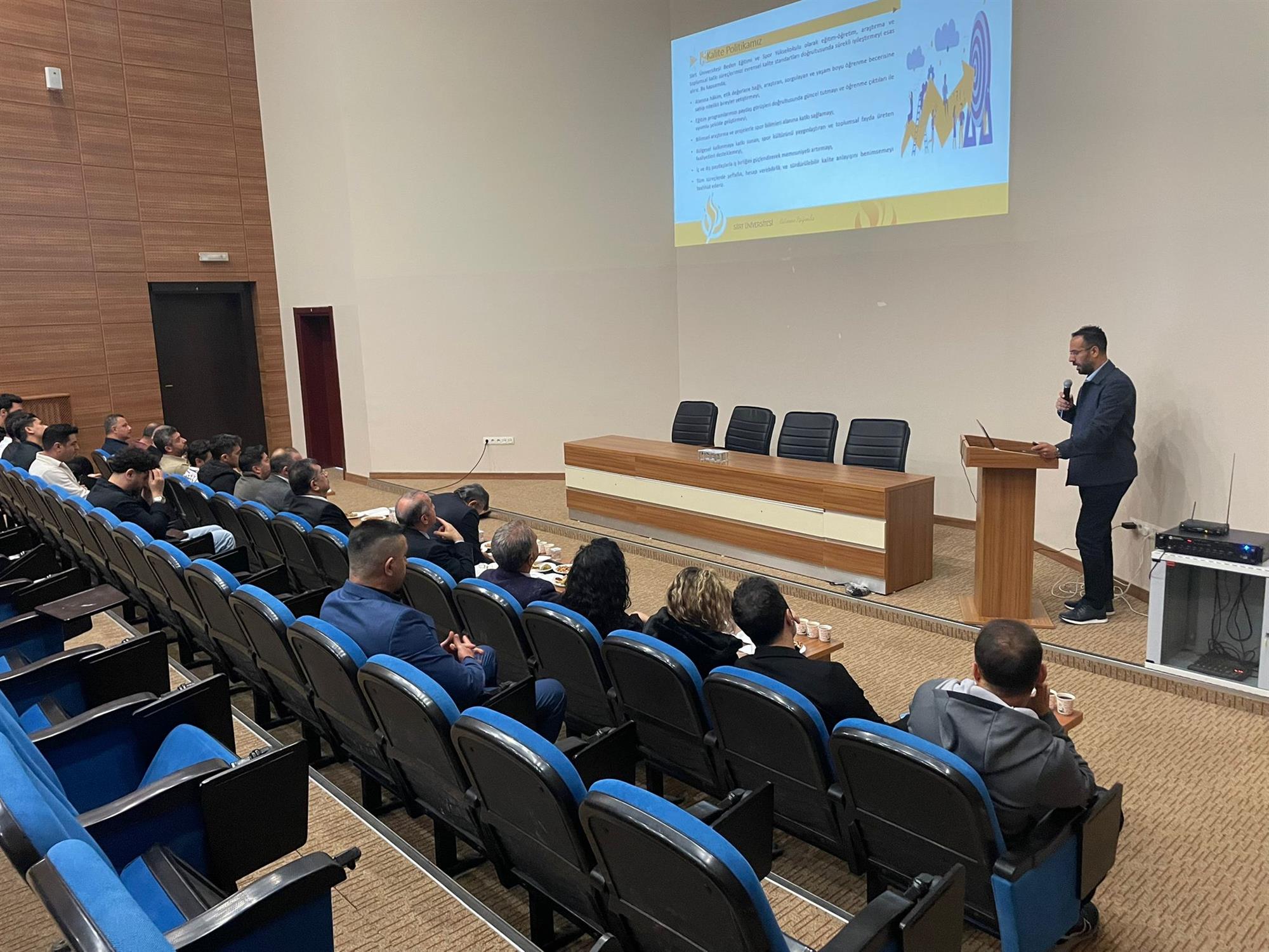 13 Nisan Salı günü, Beden Eğitimi ve Spor Yüksekokulu (BESYO) tarafından düzenlenen brifing toplantısı, konferans salonunda gerçekleştirildi. Toplantıya akademik ve idari personelin yanı sıra üniversite üst yönetimi de katılım sağladı.
