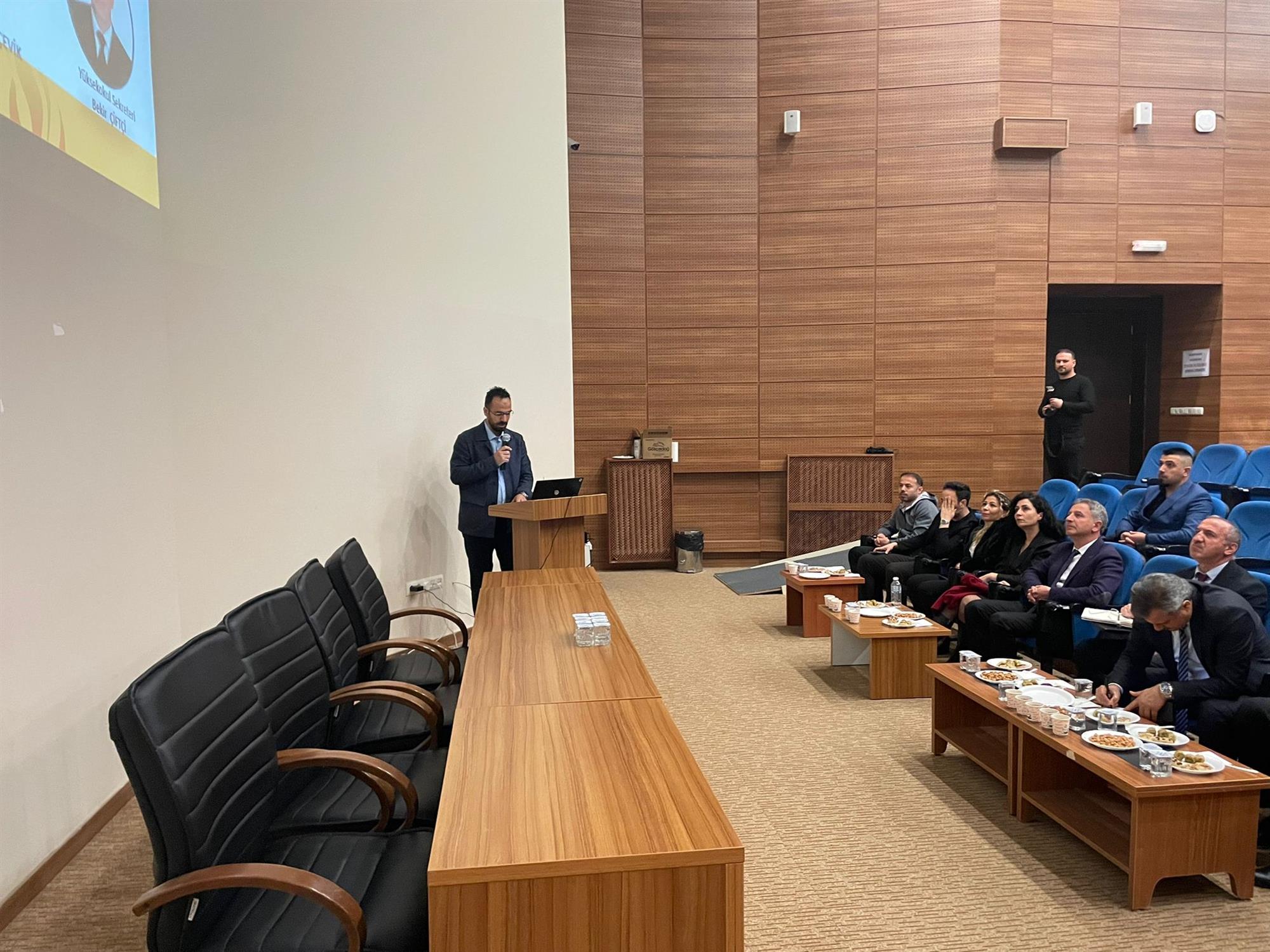 Toplantının sunumu, BESYO Müdürü Doç. Dr. Serdar Adıgüzel tarafından gerçekleştirildi. Sunumda, BESYO’nun mevcut durumu, yürütülen çalışmalar ve geleceğe yönelik planlamalar detaylı şekilde ele alındı.