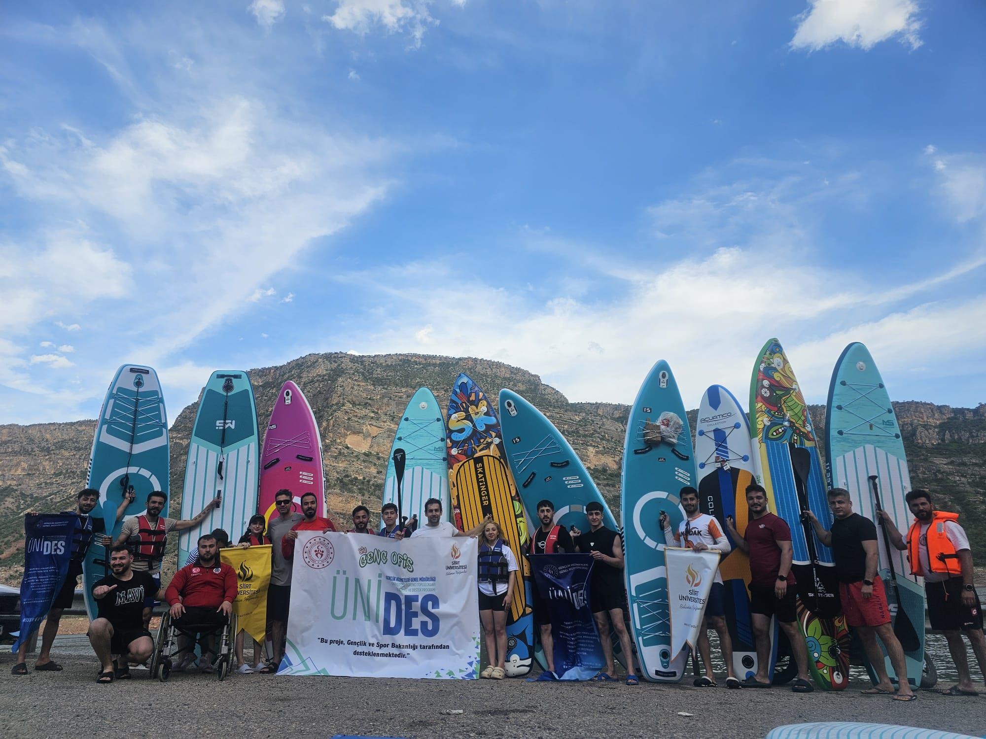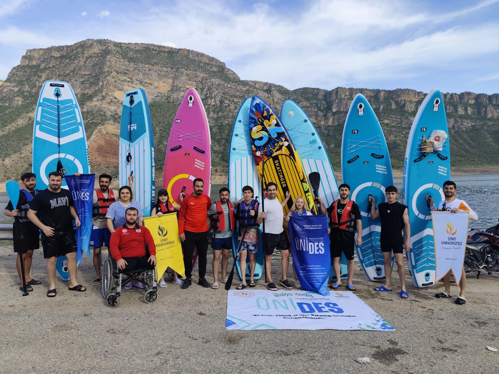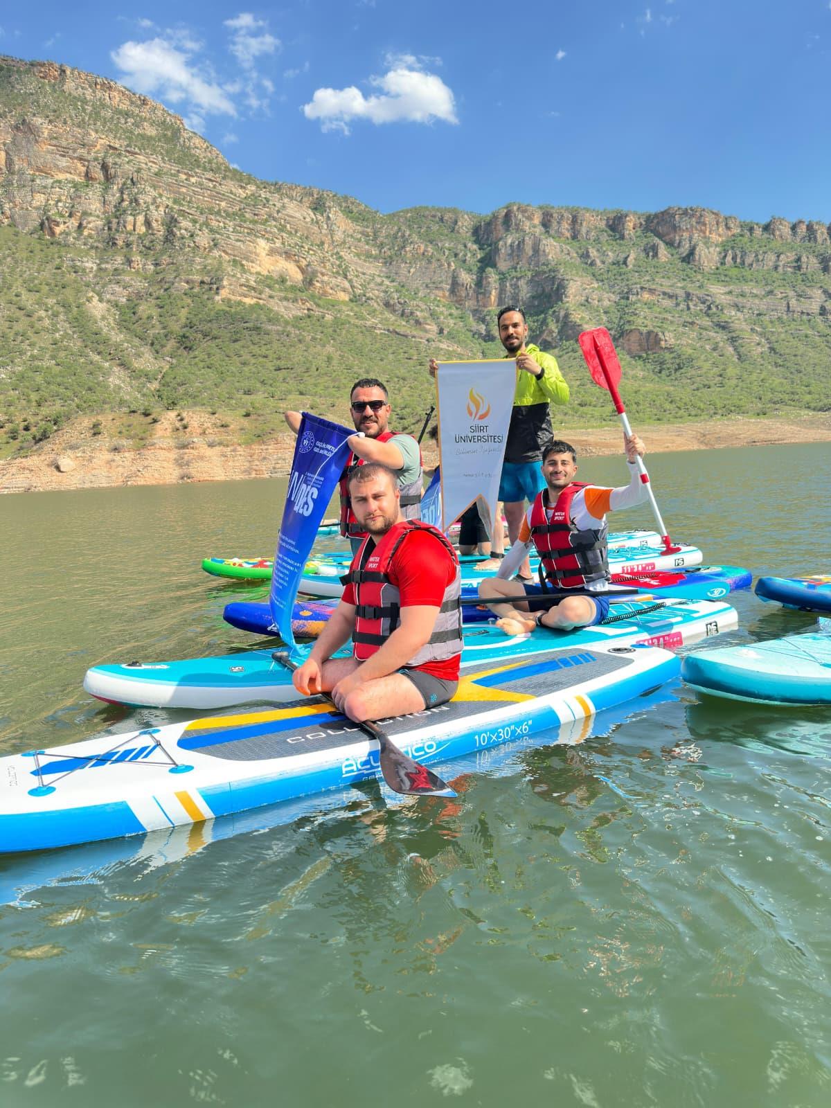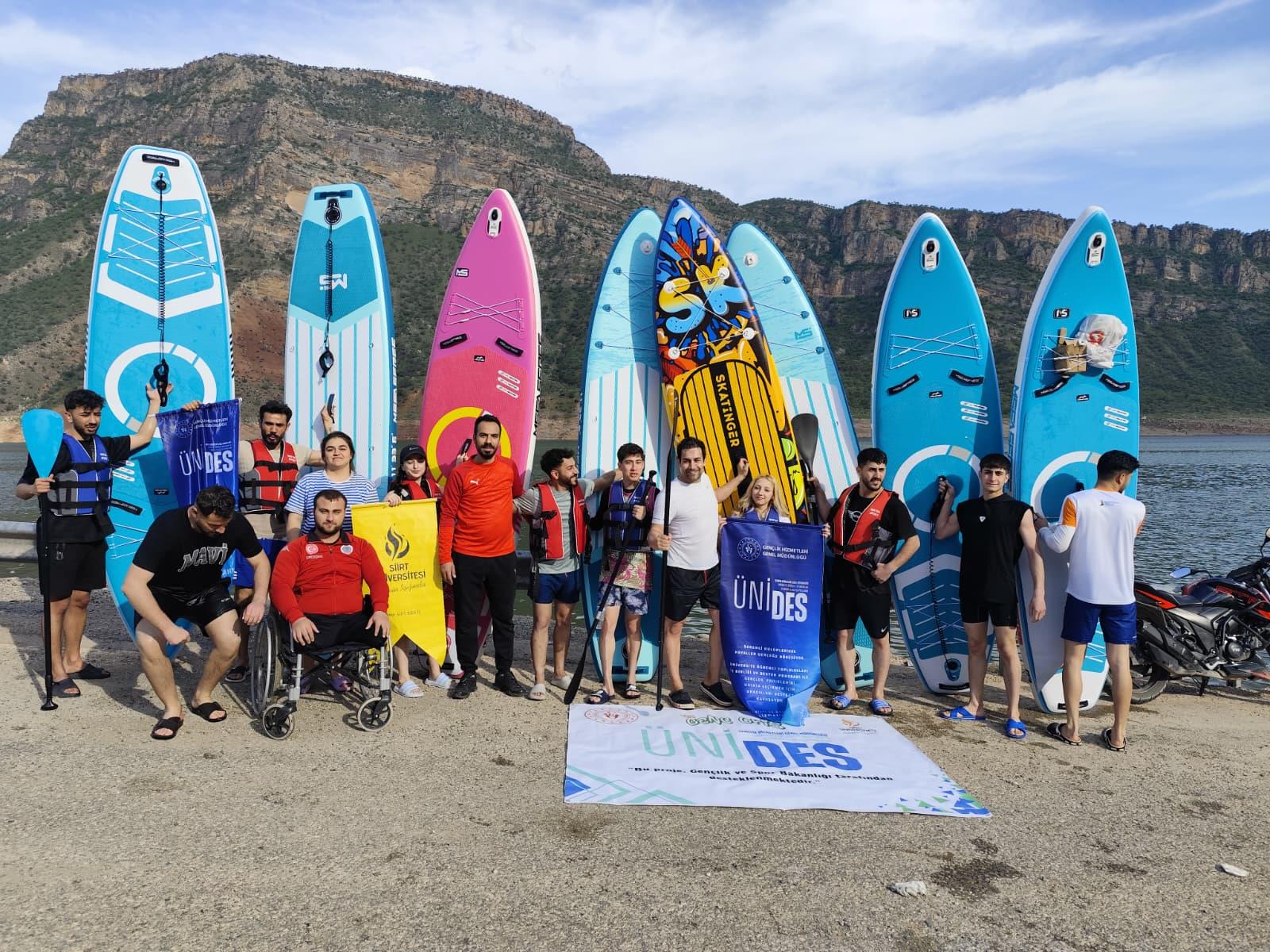 Siirt Üniversitesi Kano ve SUP Topluluğu, 3 Aralık Dünya Engelliler Günü kapsamında anlamlı bir etkinlik gerçekleştirdi. Topluluk, danışmanları Doç. Dr. Abdurrahman DEMİR eşliğinde Botan Gölü’nde Stand Up Paddle (SUP) etkinliği düzenleyerek özel gereksinimli bireyler konusunda farkındalık oluşturmayı hedefledi.
