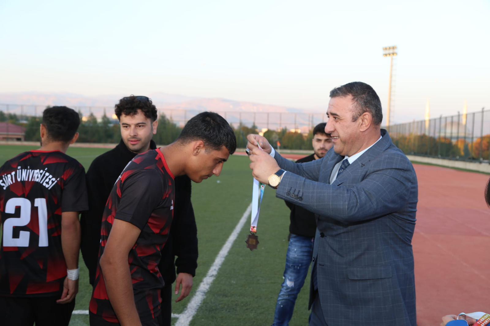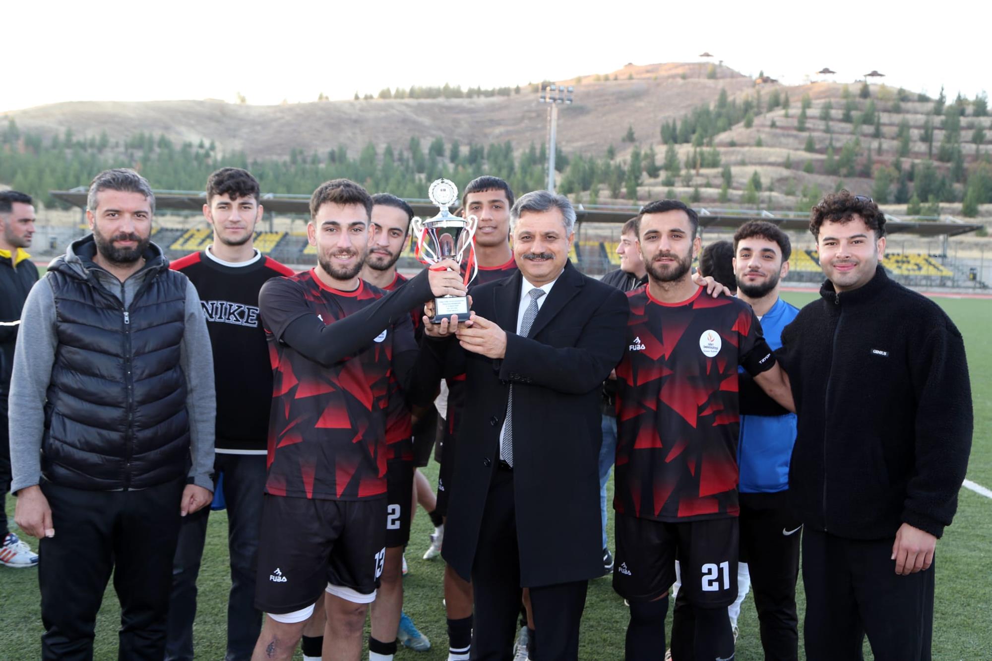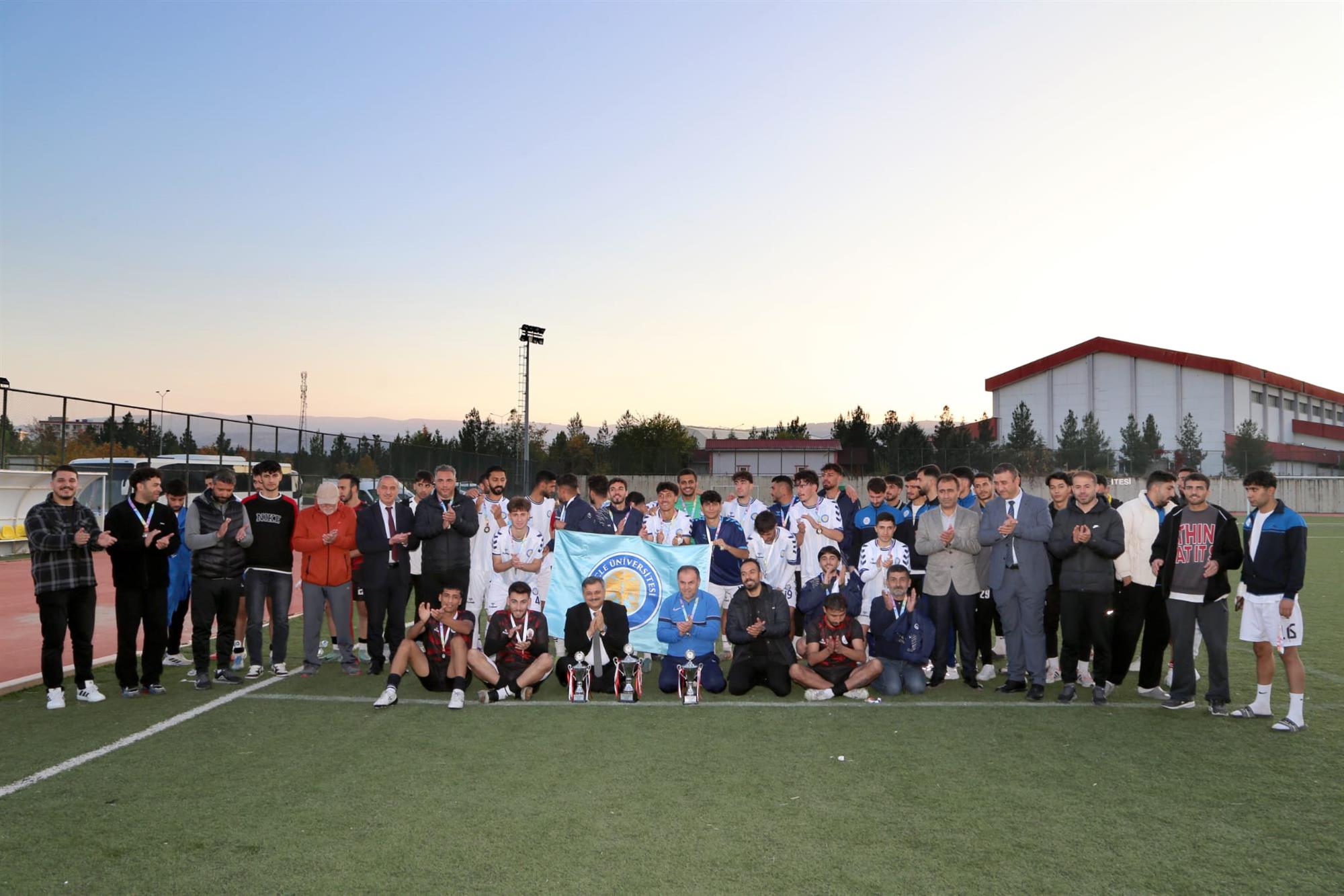 17-21 Kasım 2025 tarihleri arasında Yüksekokulumuz ev sahipliğinde düzenlenen Üniversiteler Arası Futbol Eleme Grup Müsabakaları, büyük bir heyecan ve yüksek sporcu motivasyonuyla tamamlandı. Saha içinde sergilenen centilmenlik, mücadele ve takım ruhu; saha dışında ise misafirperverliğimiz, ikramlarımız ve organizasyon kalitemizle örnek bir turnuva gerçekleşti. Final gününde dereceye giren takımlara madalyaları ve kupaları takdim edildi. Sporcularımızın mutluluğu, fair-play duruşu ve tüm takımların sergilediği güzel görüntüler organizasyona damga vurdu. Bu anlamlı etkinliğe katılan başta Sayın Rektörümüz Prof. Dr. Nihat ŞINDAK olmak üzere tüm hocalarımıza, antrenörlere, sporculara ve katkı sunan personelimize teşekkür ederiz.